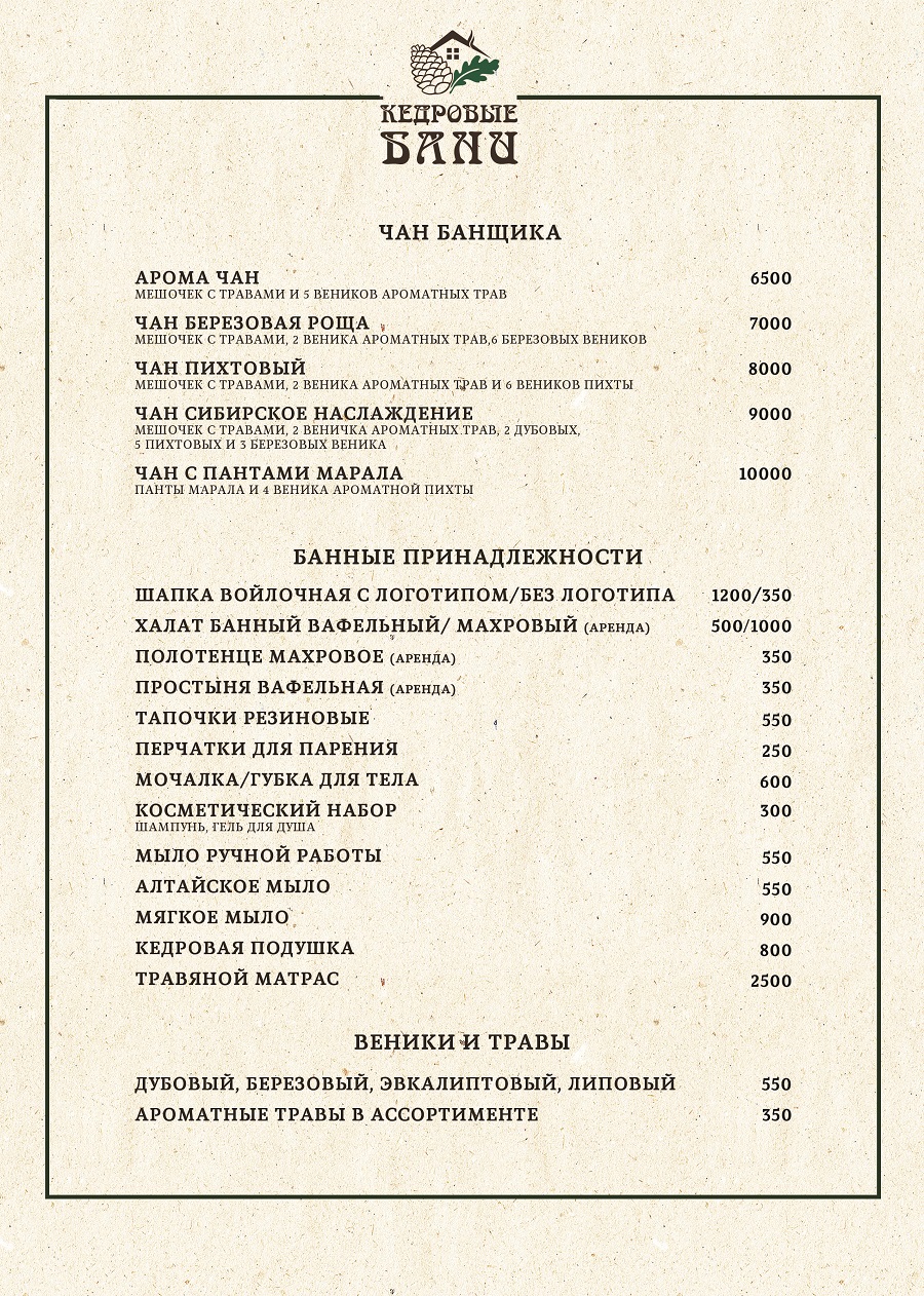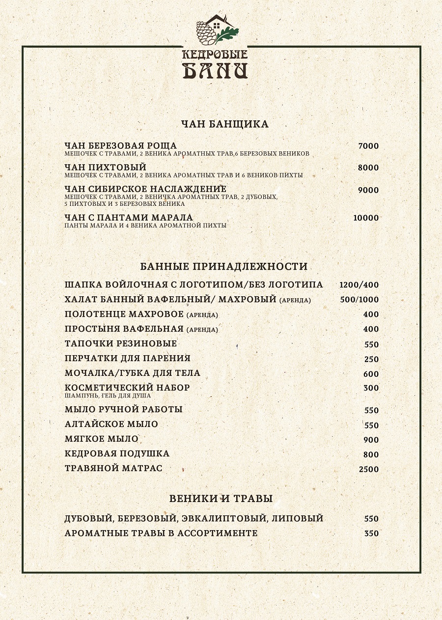 В аренду Кедровой бани входит одна большая кедровая парная, зоны для отдыха с выходом на улицу, раздевалка . В просторной парилке с печью и каменкой есть два ряда широких полков, установленных